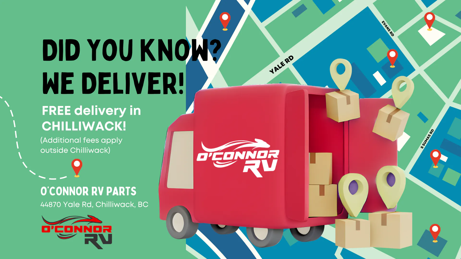 Routine maintenance is key to keeping your RV clean, safe, and road-ready. With O’Connor RV on your side, get the parts you need to keep your trailer in top condition, plus explore an array of exciting seasonal accessories to make each big adventure its best. Need help with installation or repairs? Put our RV technicians to the test for everything from plumbing repairs to brake checks - we promise you won’t be disappointed! And don’t forget: we regularly update our parts and accessory specials, so be sure to check back often and follow us on social media for our most current special offers. We guarantee you’re in good hands at O’Connor RV, Chilliwack’s favourite one-stop RV dealership for RV parts and accessories, new and used units, and so much more. Visit us today at 44430 Yale Rd in Chilliwack, BC, just off the Trans-Canada Highway, or give us a call at (604) 792-2747 to chat with our team about our latest parts and accessory offers!